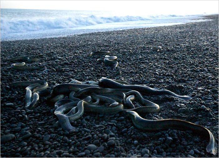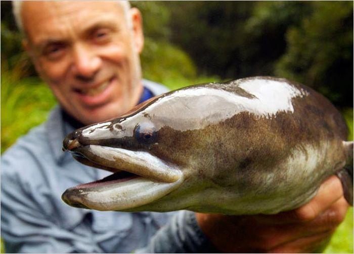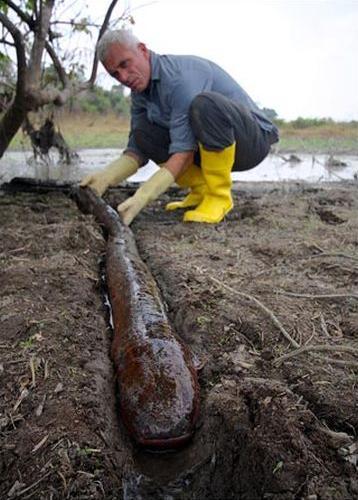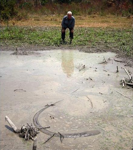 브라질 아마존 강에서 잡은 2.4m 19kg 짜리 대형 전기 뱀장어