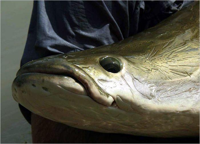 메콩강의 Siamese 물고기의 새끼 - 물고기는 자라면 3m 길이에 무게가 300kg까지 자란다.