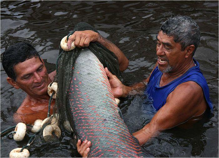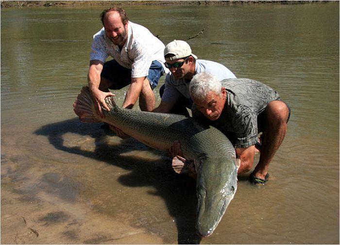 브라질 Rio Madeira Floodplain 호수에서 잡은 68파운드짜리 아라파이마(Arapaima)