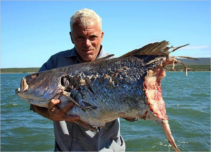 남아프리카 잠베지강에서 잡은 7피트 9인치 285파운드 황소 상어