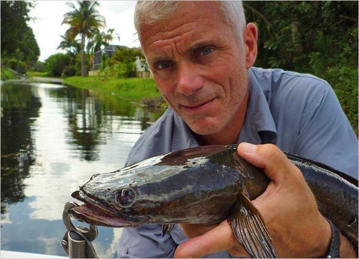 여러 종류의 거대한 민물 고기를 잡는 극단적인 별종 낚시꾼으로 유명하다.